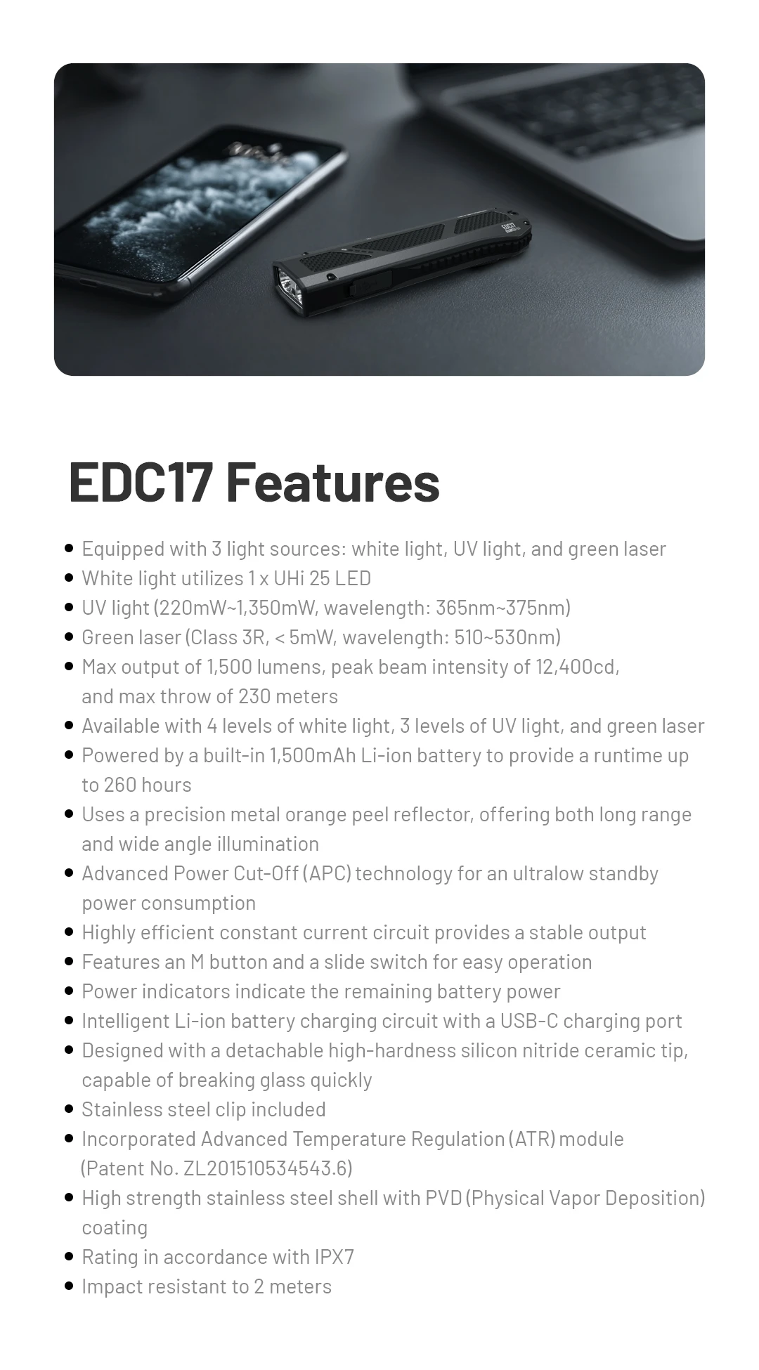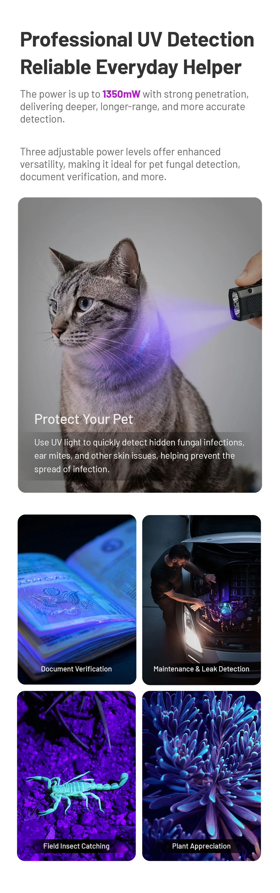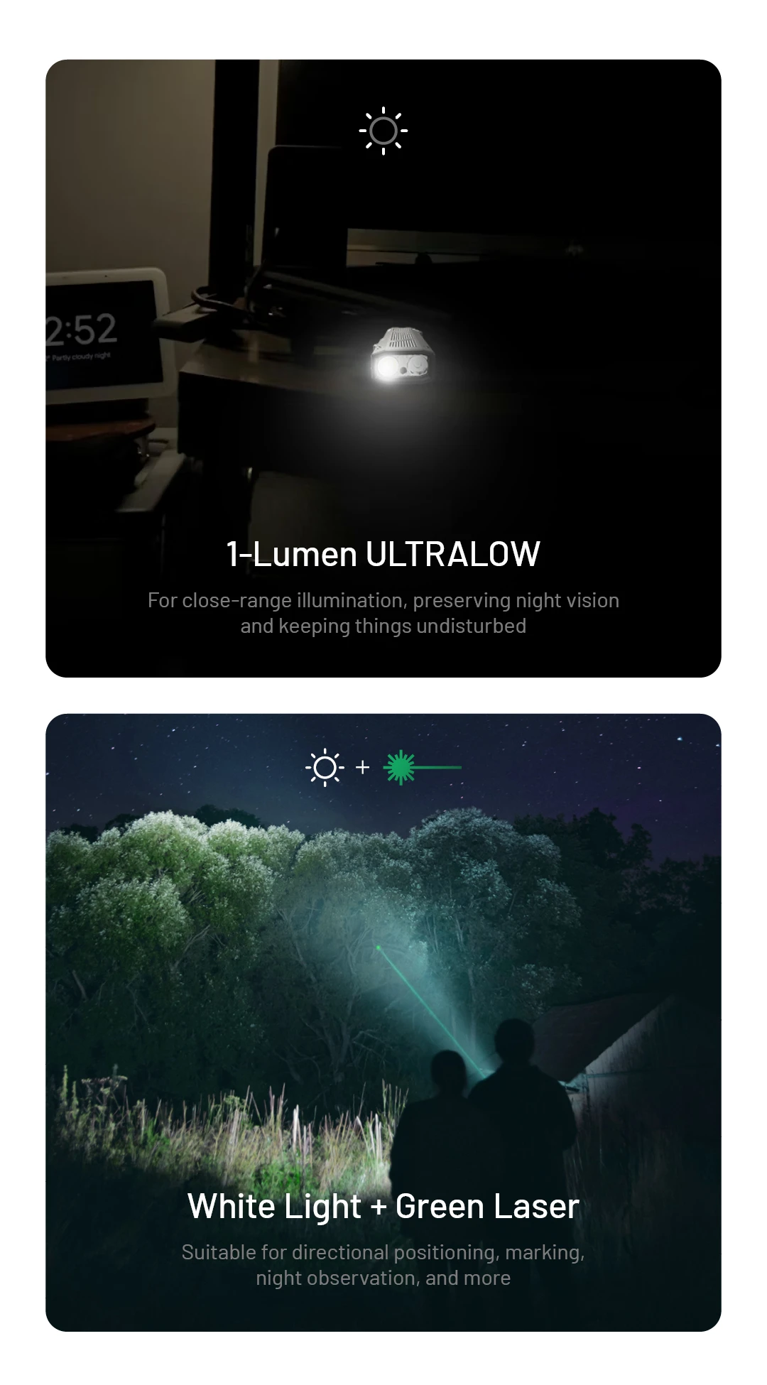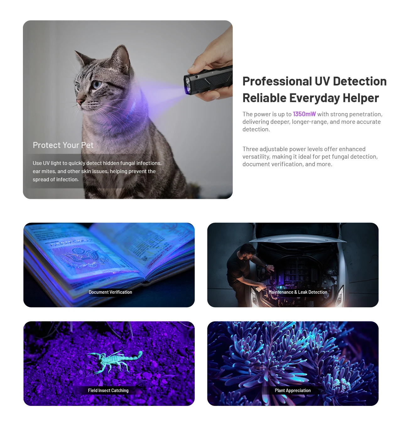 White Light, UV Light, Green Laser