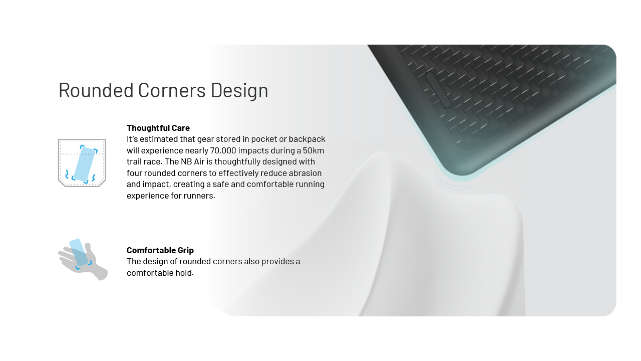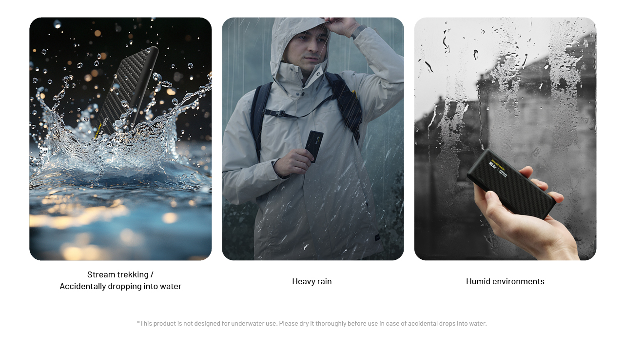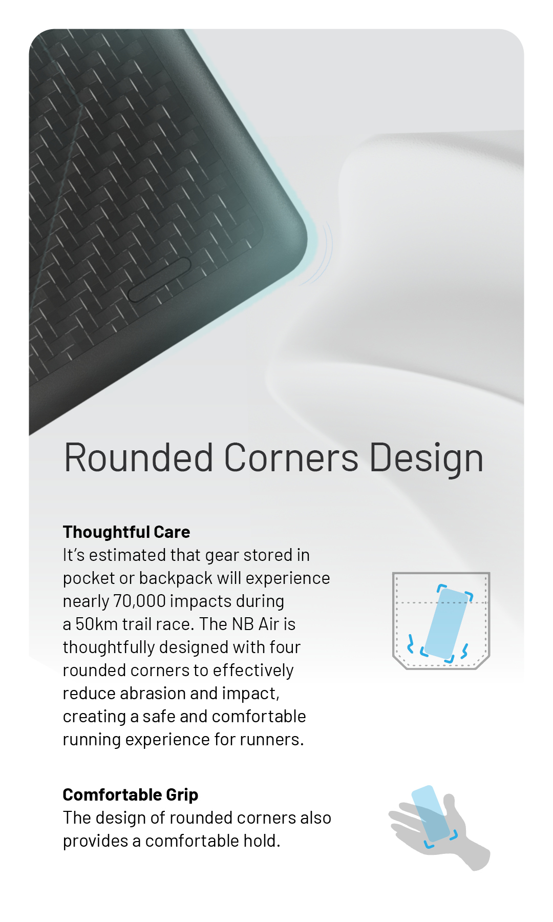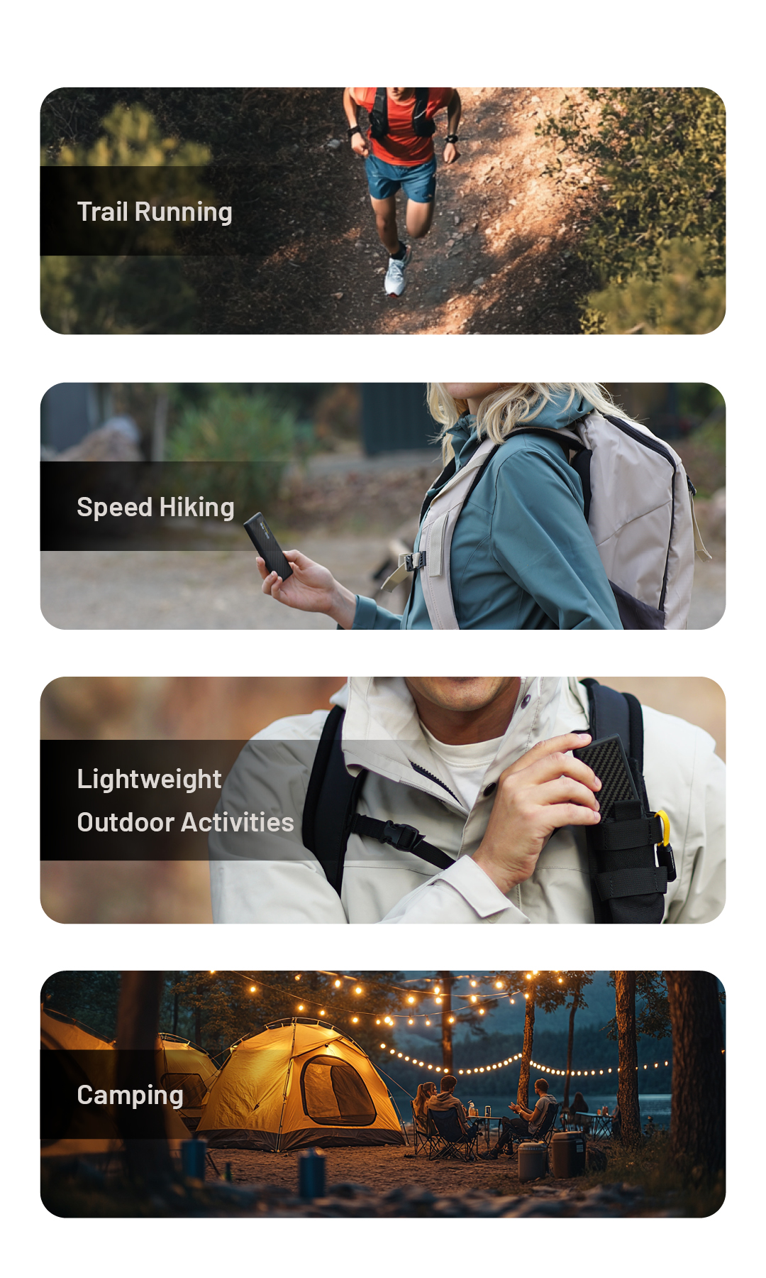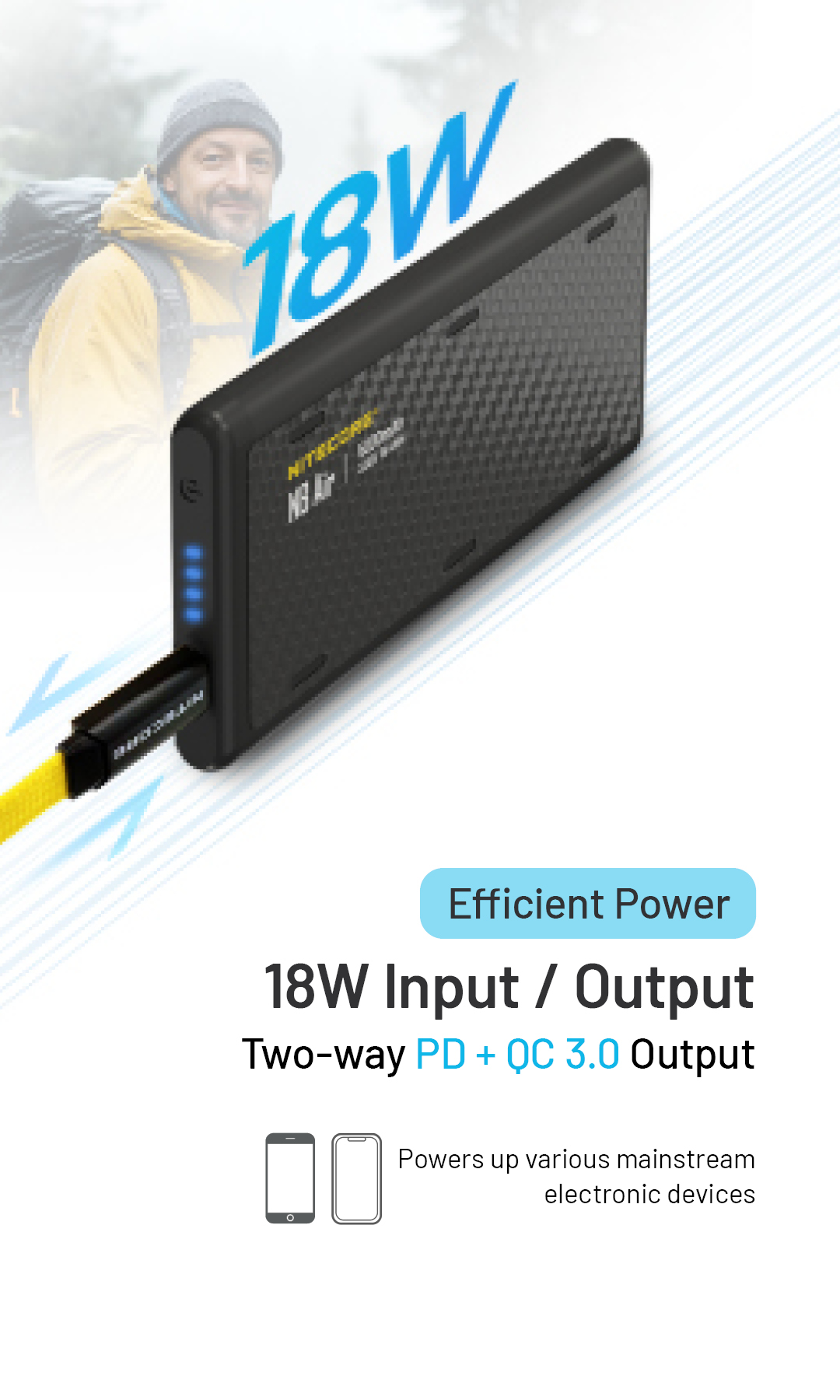 The NB Air, Waterproof Competition-Grade Energy Bar, weighing only 89g / 3.14 oz, provides a backup power of 5000mAh with a max 18W output. The IPX7 rating and the self-developed composite anti-torsion structure, make the NB Air a portable, durable and reliable energy companion for outdoor enthusiasts.