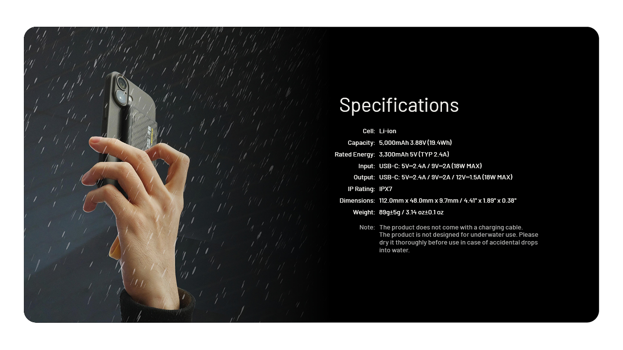 Capacity: 5,000mAh 3.88V (19.4Wh)